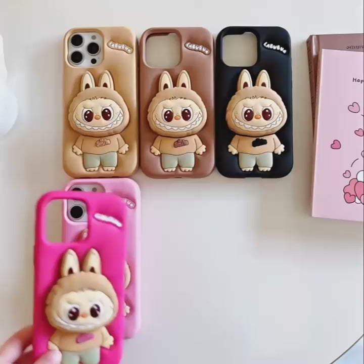 Labubu Cuddle Pop Silicone With Pop Stand Phone Case | Soft Silicone Cover